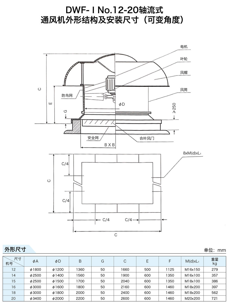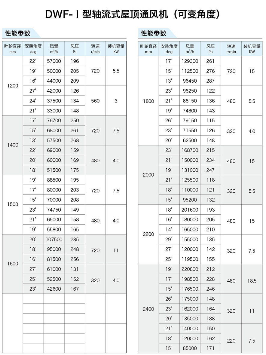 屋頂式軸流通風機,型式規(guī)格多,應用范圍廣泛,可根據(jù)使用場合的壓力、風置和噪聲的不同要求選用。 DWF-I軸流式屋頂風機,具有風置大、壓力較離心式風機低的特點,同時根據(jù)用戶需要還可設(shè)計成雙 向旋轉(zhuǎn)可逆,正反工況等效的特點。